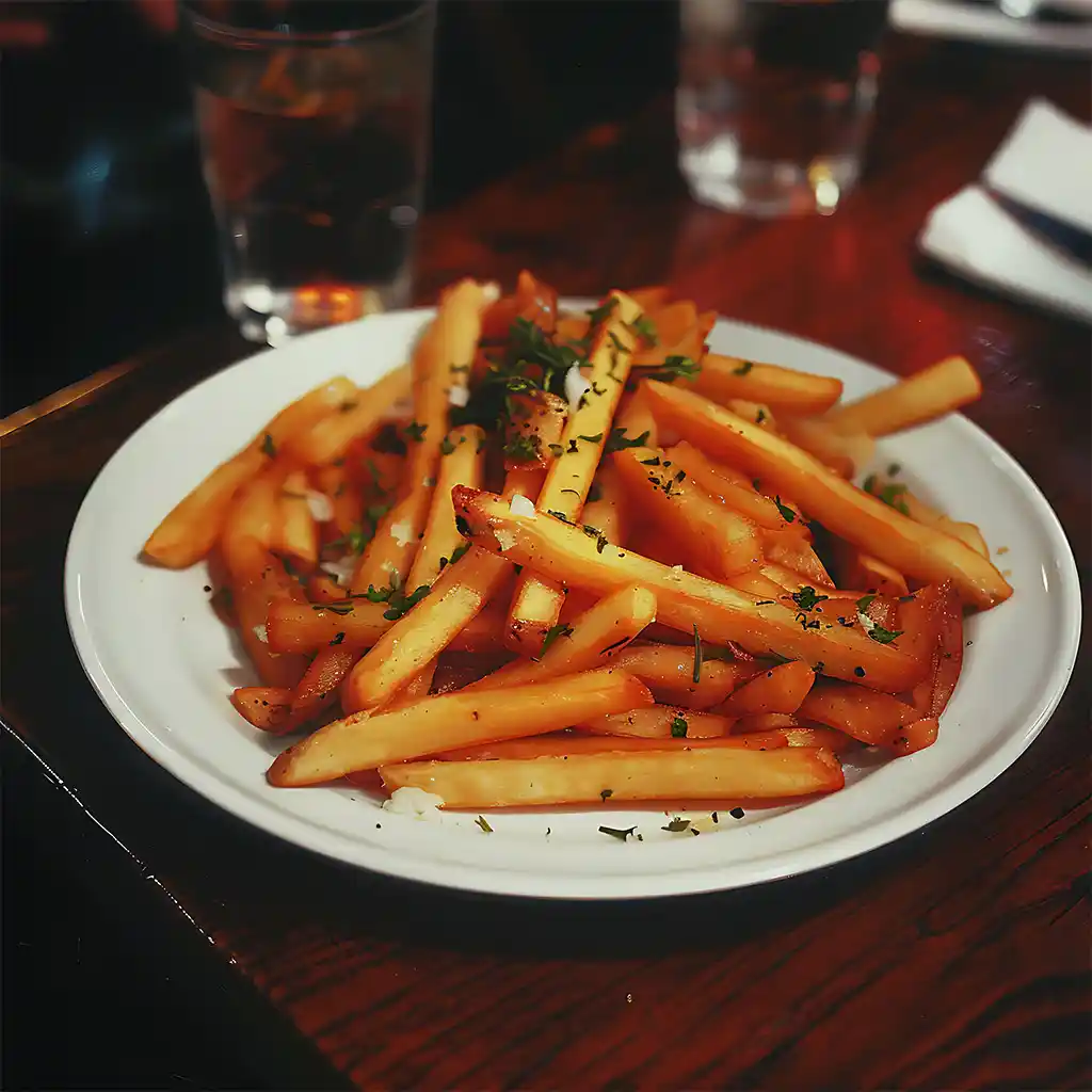 Goldene, knusprige Pommes frites, perfekt gesalzen. Ein knuspriger Favorit, der bei jedem Kind beliebt ist.
