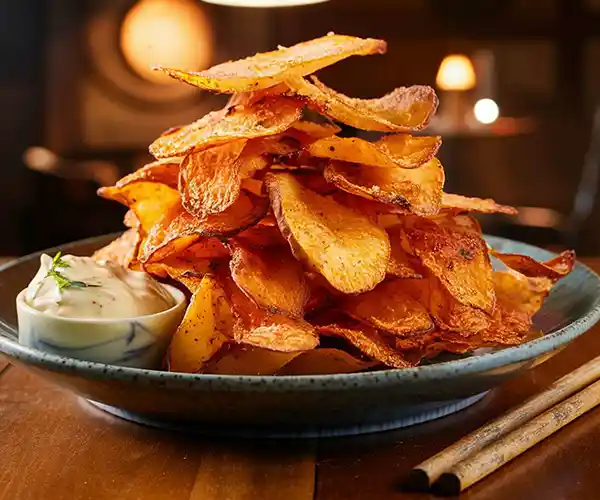 Leckere Optionen für unsere jüngeren Gäste, serviert mit unseren Signature Bull Chips und einfachen süßen Leckereien.